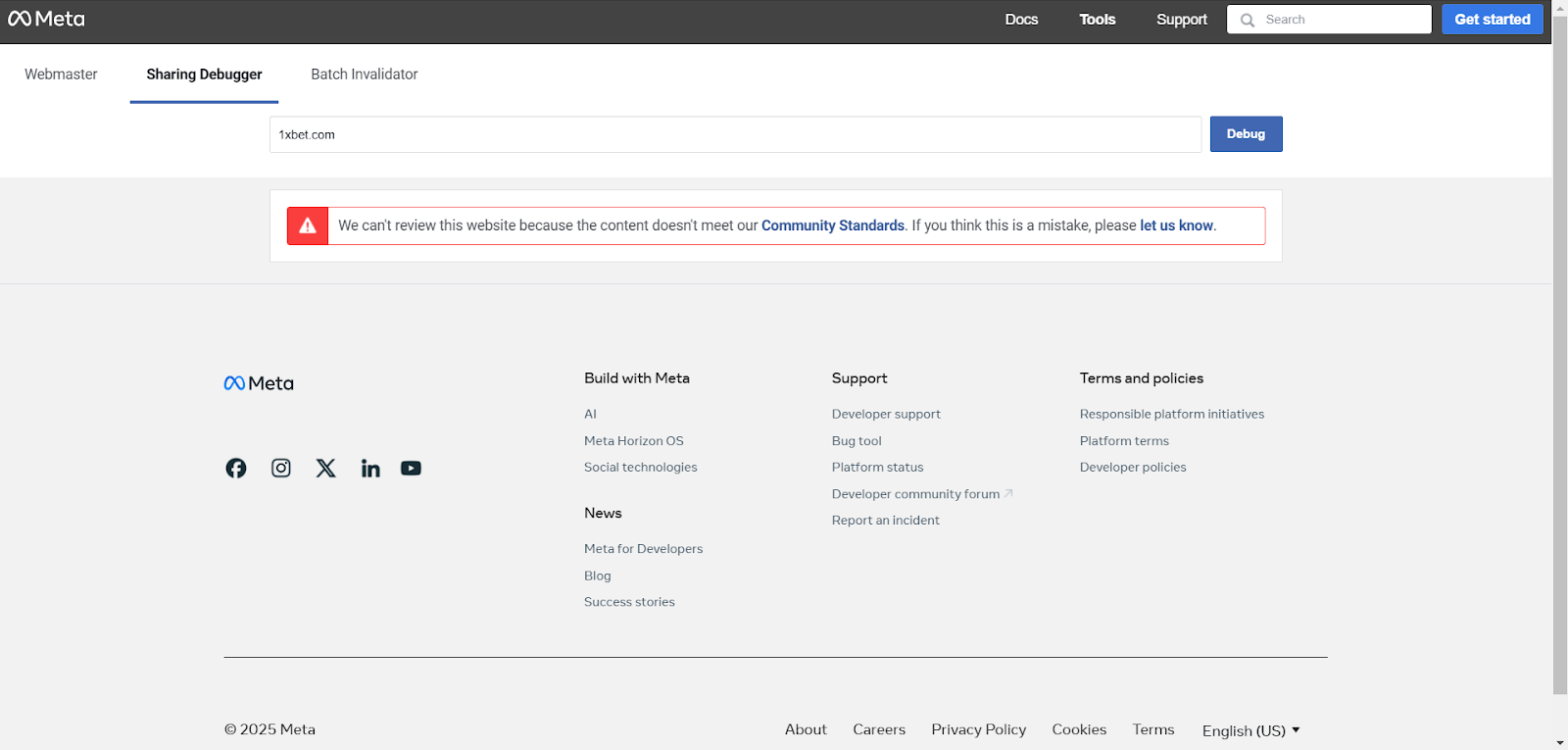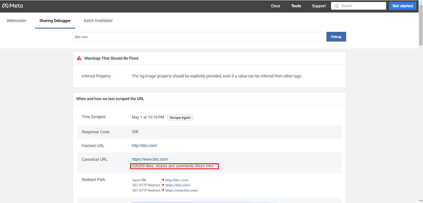- Ручная проверка в Meta. Снова возвращаемся к Sharing Debugger для финального вердикта.